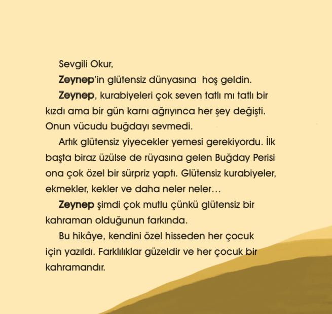 Artık glütensiz yiyecekler yemesi gerekiyordu. İlk başta biraz üzülse de rüyasına gelen Buğday Perisi ona çok özel bir sürpriz yaptı. Glütensiz kurabiyeler, ekmekler, kekler ve daha neler neler...